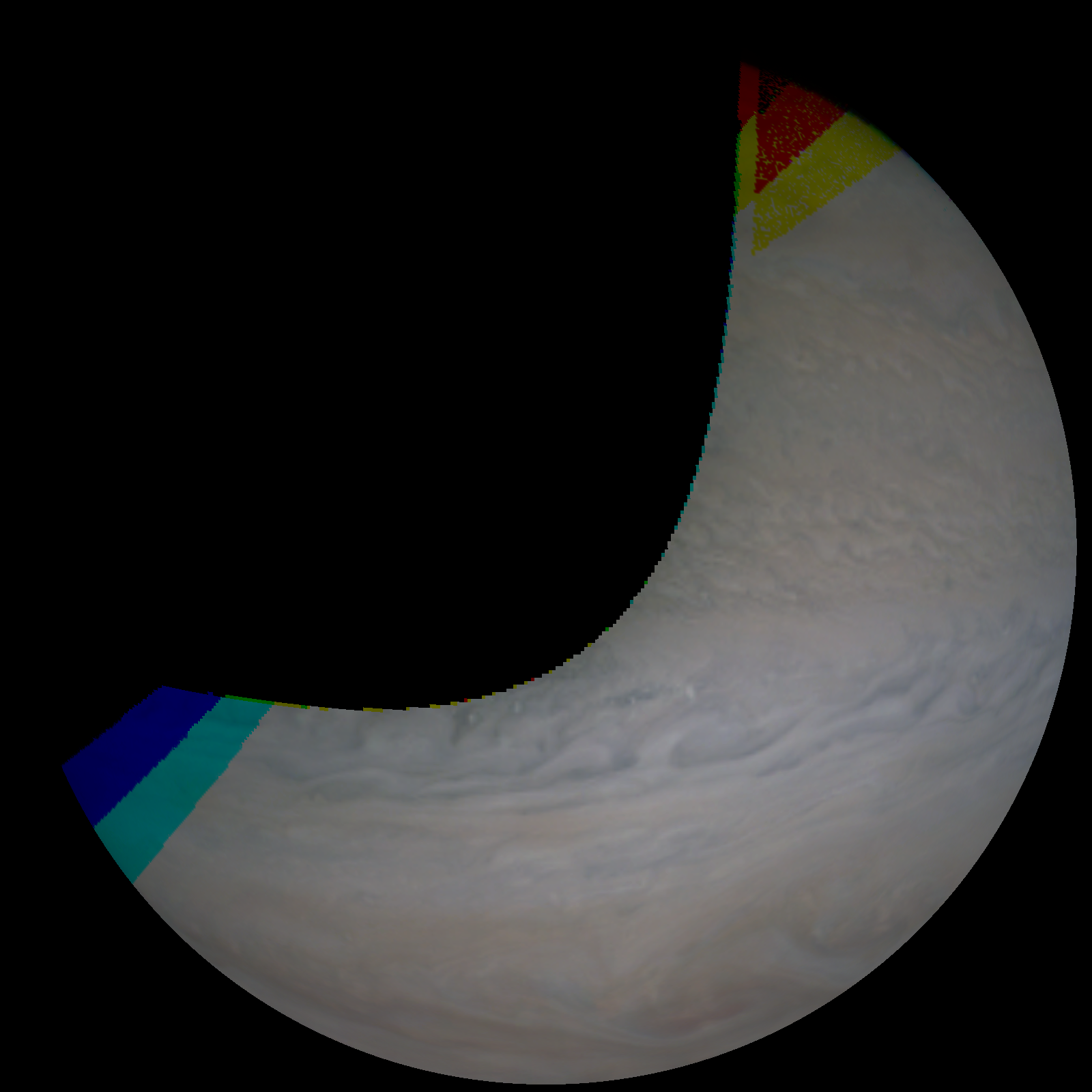 A special note about the Earth Flyby mission phase images: these were acquired in 2013 when Juno flew past Earth. Examples of processed images are shown; most contributions are from amateurs.