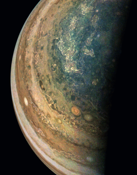 Here is a report on the JunoCam images from PJ15. Highlights included excellent views of the STB Spectre, and of the two ovals in the far south which were bouncing off one another at the time. A global map of the southern hemisphere is included.