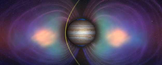 Surrounding Jupiter is a belt of radiation and charged particles - protons, electrons, and ions – like an electric doughnut. These particles fly around and can damage electronics, posing a hazard for any spacecraft visiting Jupiter. Earth has similar - albeit weaker - rings of radiation called the Van Allen Belts.