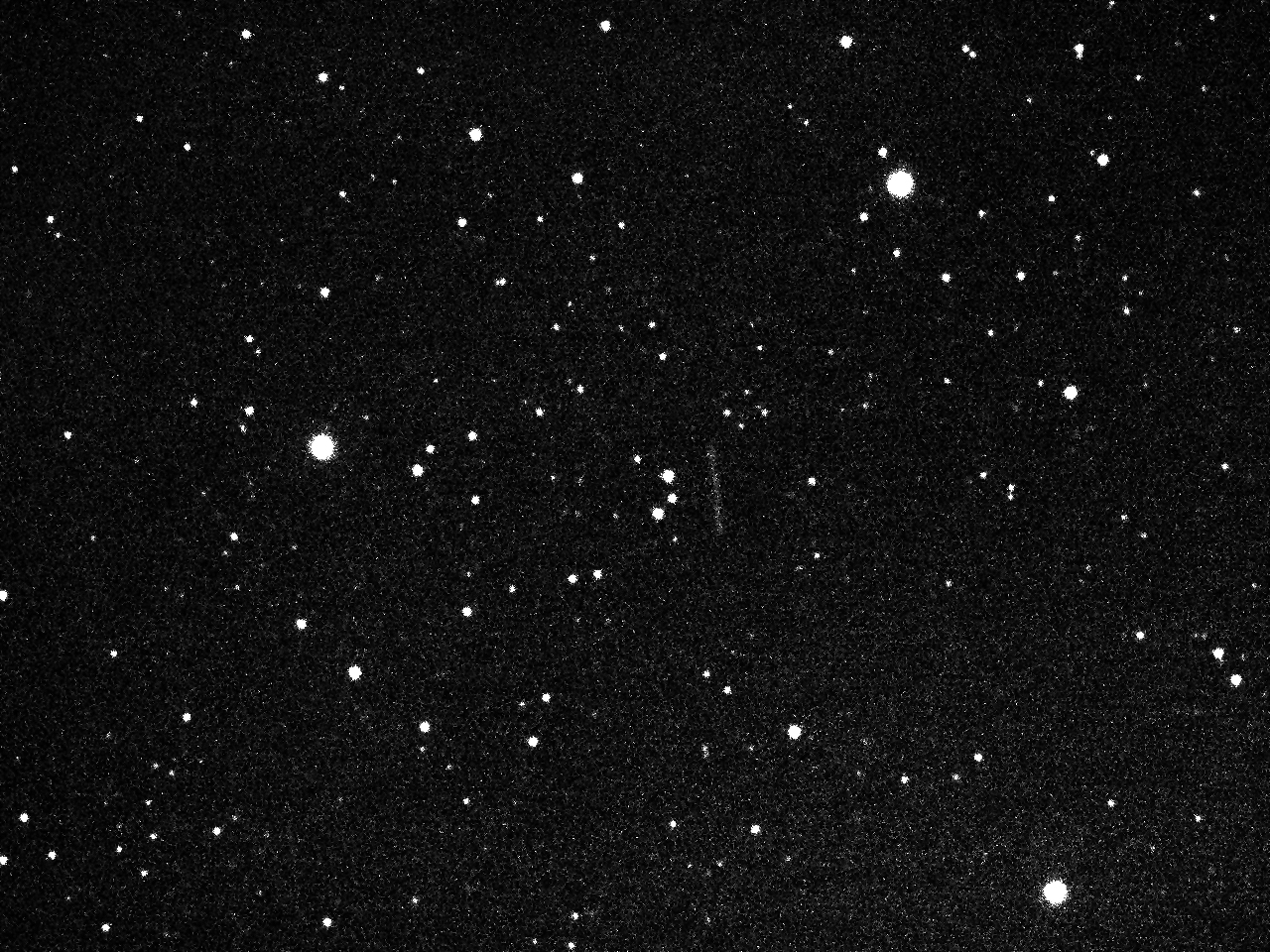 just left of center; the diagonal trails in the image are background stars.