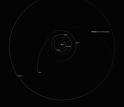 As of September 8, 2014, Juno is approximately 416 million miles (670 million kilometers) from Earth. The one-way radio signal travel time between Earth and Juno is currently about 37 minutes. Juno is traveling at a velocity of approximately 33,400 miles per hour (15 kilometers per second) relative to the sun, and 83,400 thousand miles per hour (37 kilometers per second) relative to Earth. Juno has now travelled 1.42 billion miles (2.3 billion kilometers, or 15.28 AU) since launch. The Juno spacecraft remains in excellent health and is operating nominally.