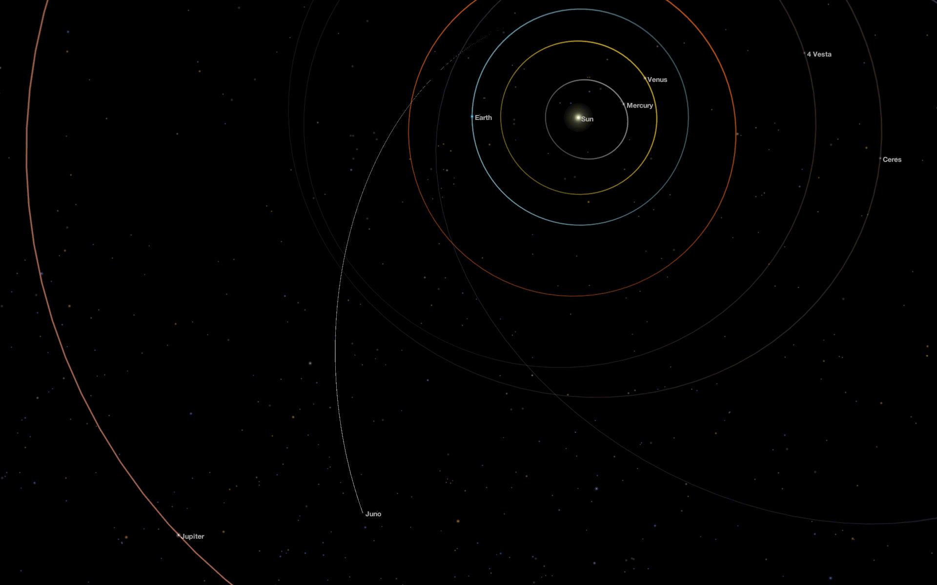 Visualize Juno's current position and velocity using NASA's Eyes on the Solar System 3D interactive or the NASA/JPL Solar System Simulator.